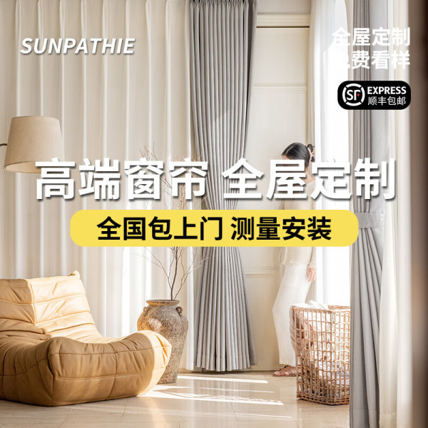 桑帕蒂 高端全屋定制定做窗帘客厅飘窗遮光抗菌轻奢现代简约2024年新款 窗帘样布大礼包