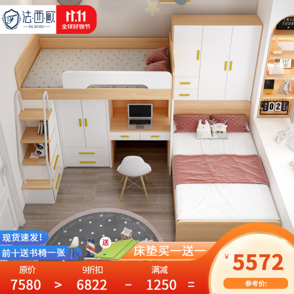 Faxiou 法西欧 交错式上下床儿童床错位型上下铺小户型多功能高低床子母床带书桌