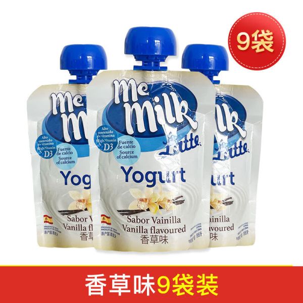 落蓝西班牙进口酸奶me milk无宝宝零食添加memilk+童1岁幼儿食谱 香草味9袋装 23年10月