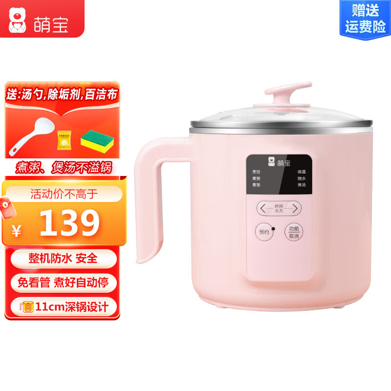 萌宝新款防水电煮锅多功能小电锅宿舍电热火锅家用不粘锅煮粥不溢11CM深锅设计1.8升智能 1.8L 粉色不锈钢锅带蒸笼 沥糖蓝【会粘锅】