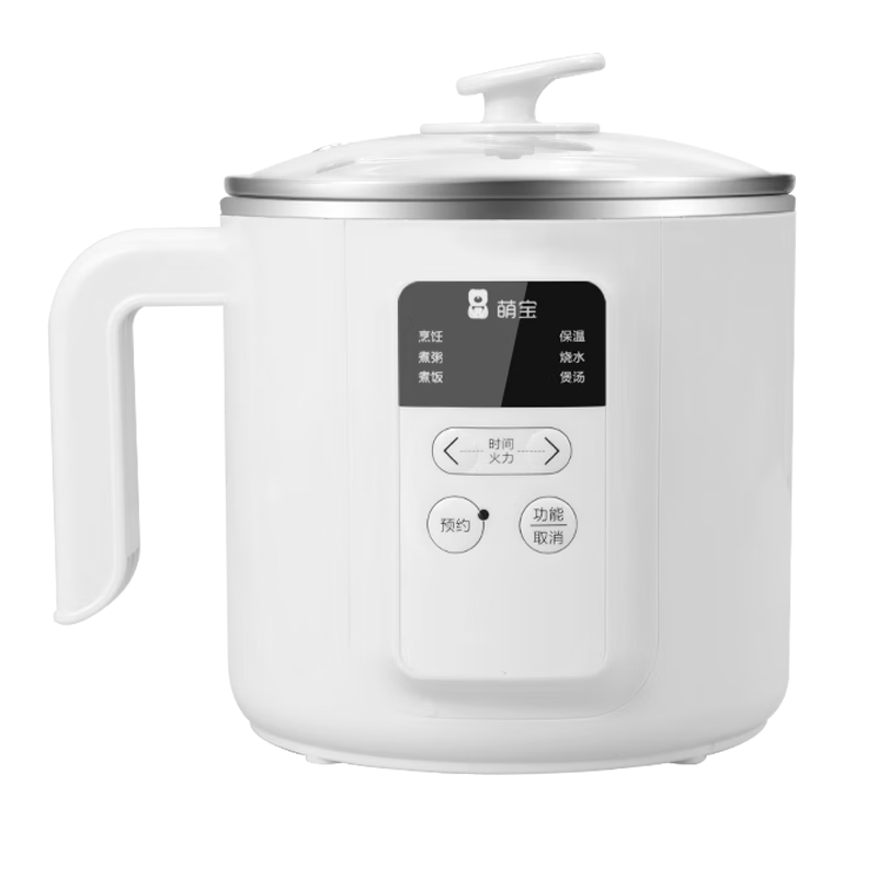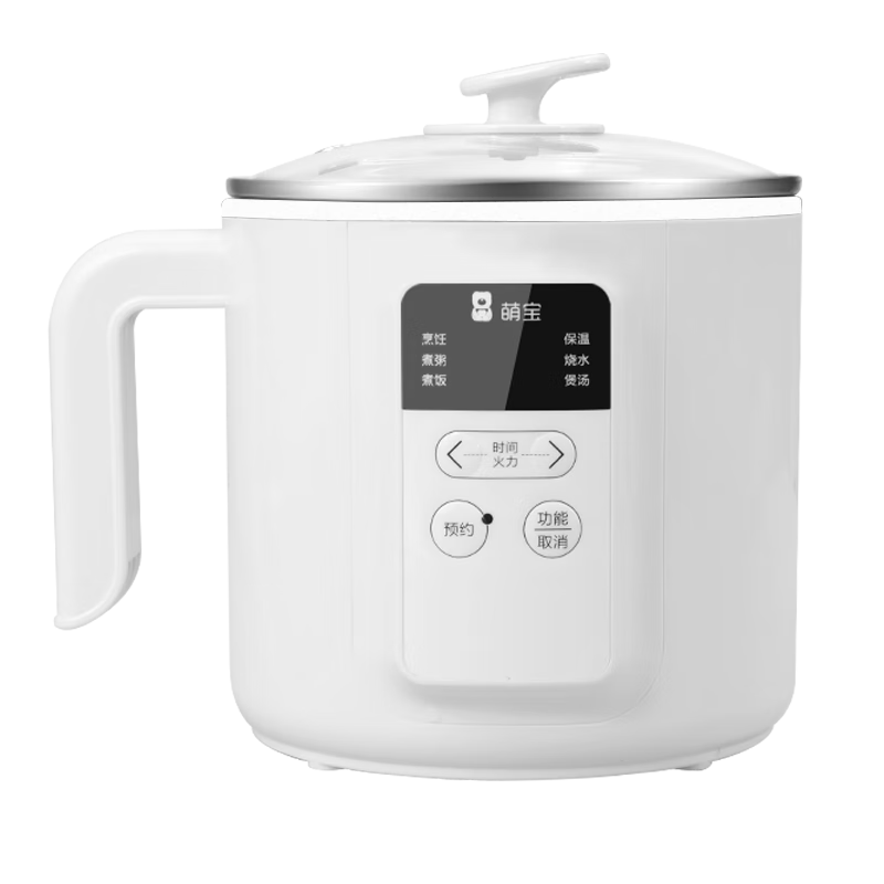 萌宝新款防水电煮锅多功能小电锅宿舍电热火锅家用不粘锅煮粥不溢11CM深锅设计1.8升智能 1.8L 白色珐琅不粘锅无蒸笼