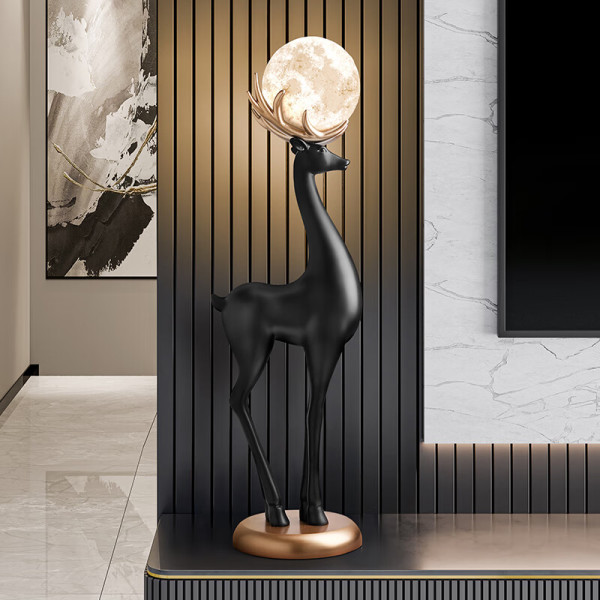 贝汉美 大型麋鹿落地摆件轻奢高档客厅电视柜旁装饰品灯乔迁之喜搬家礼物 麋鹿月球灯