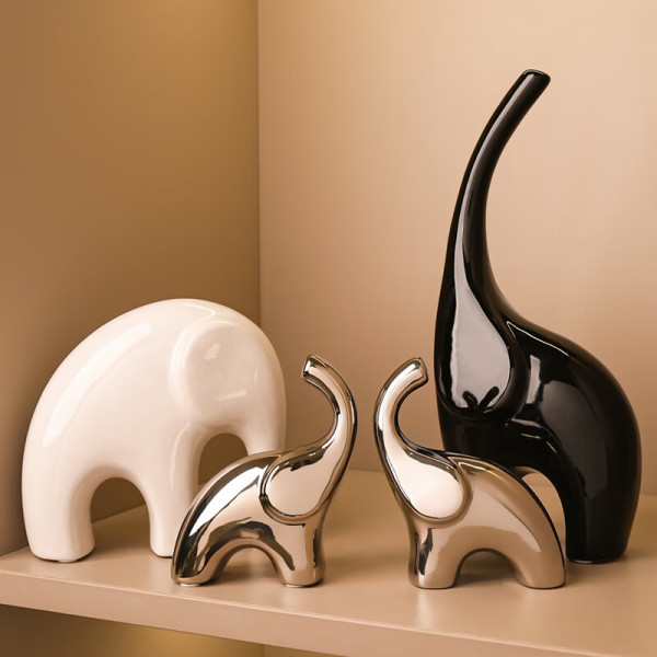 贝汉美 现代简约轻奢大象摆件 吉象一家亲 升级四口款