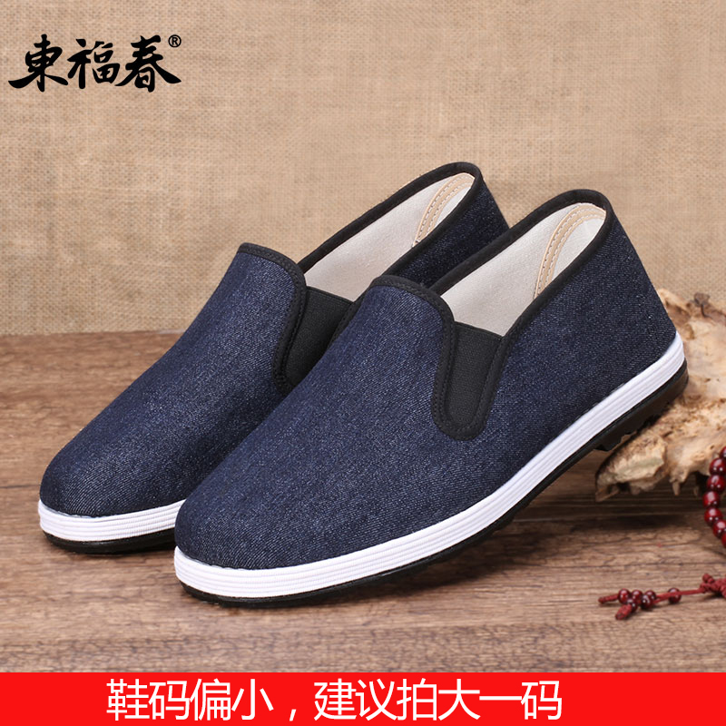 东福春老北京布鞋男传统手工老人千层底黑色老布鞋防滑青年懒人一脚蹬 蓝色(四季款) 42