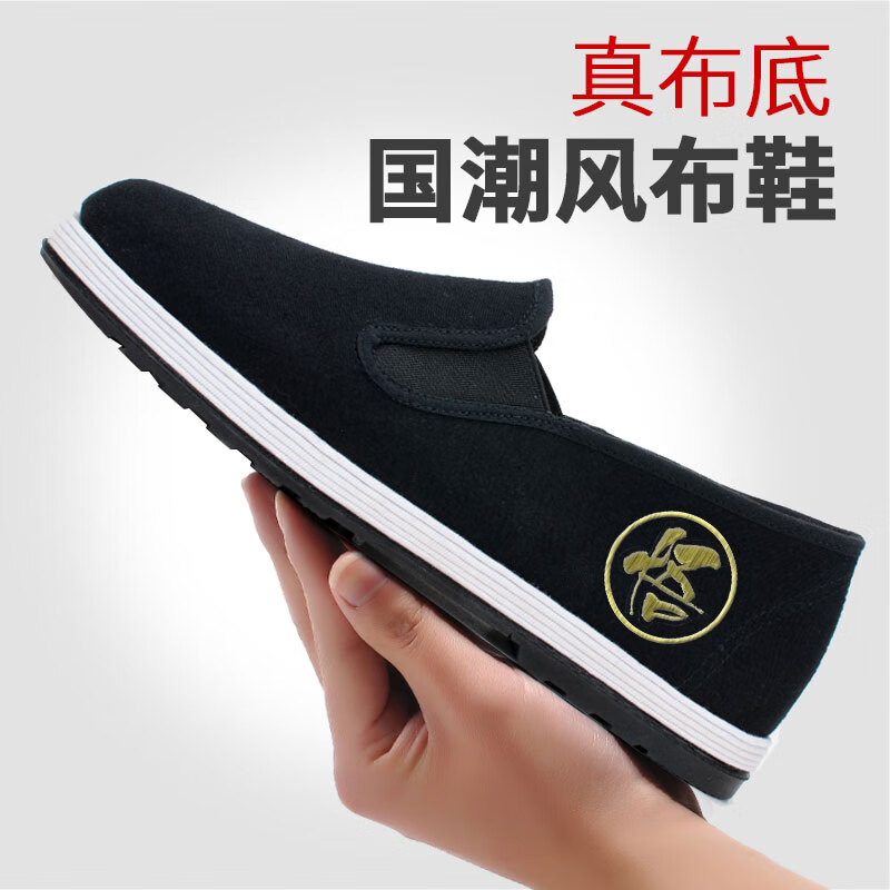 东福春老北京布鞋男传统手工老人千层底黑色老布鞋防滑青年懒人一脚蹬 黑色(四季款)刺绣悟 38