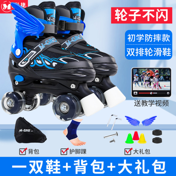 聪捷 溜冰鞋儿童双排轮滑鞋成人成年四轮旱冰鞋夜光闪光男女溜冰场专用