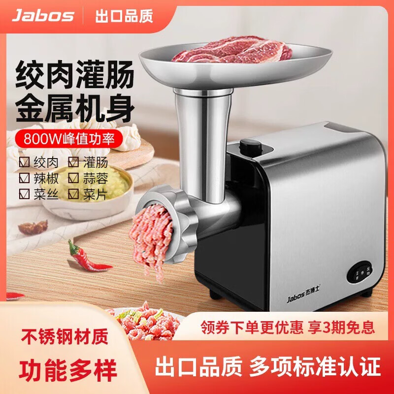 杰博士(Jabos)绞肉机家用电动商用灌肠机辅食机搅馅机不锈钢碎肉机香肠机绞菜机小型多功能料理机子 家用小型商用级 1.2L 肉/分钟 尊享款