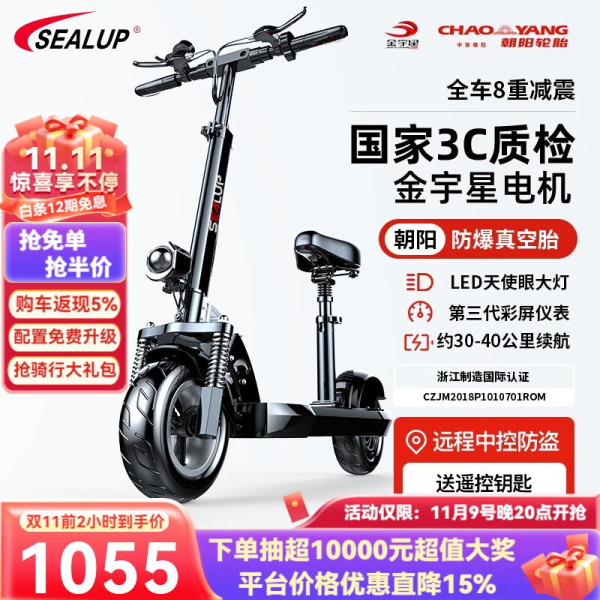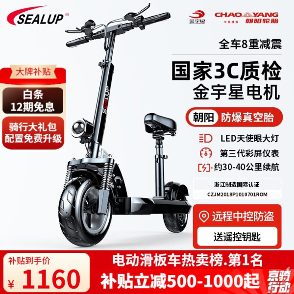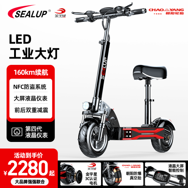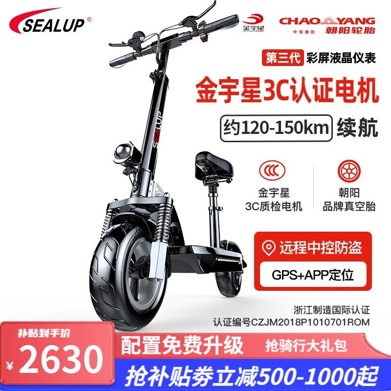 希洛普(SEALUP) 锂电池电动滑板车 便携可折叠电动车 代驾两轮代步车迷你电动车 48V黑/朝阳真空胎3C金宇星/120-150km