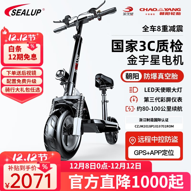 希洛普(SEALUP)电动滑板车成人 迷你电动车 小型代步车电动车 12寸越野电动车 Q18/宽屏转把/3C电机/约100KM