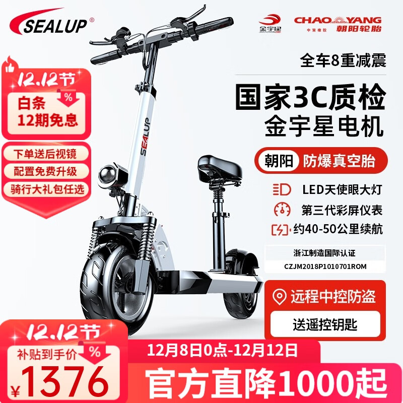 希洛普(SEALUP) 锂电池电动滑板车 便携可折叠电动车 代驾两轮代步车迷你电动车 36V白/朝阳真空胎/3C金宇星/40-50km
