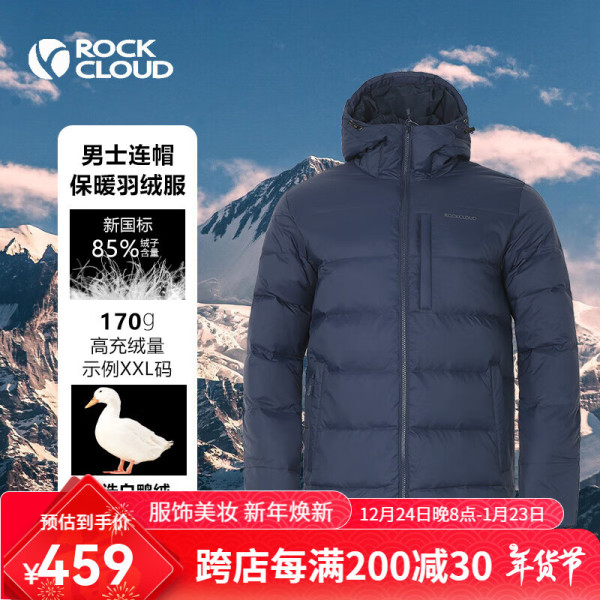 ROCKCLOUD24新款户外650蓬鸭绒男款加厚防风保暖羽绒服