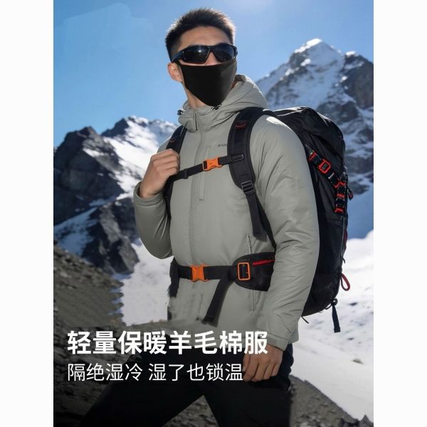 百亿补贴:Rock Cloud 岩云羊毛棉服男户外连帽保暖外套秋冬防泼水轻量化防风外套