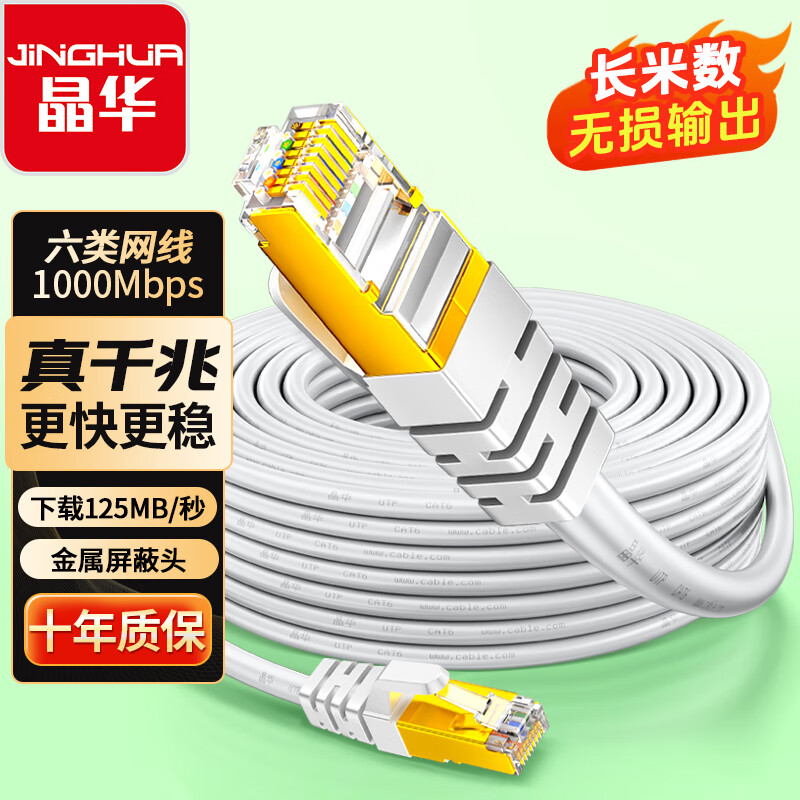 晶华六类CAT6类网线高速千兆网络连接线家用电脑宽带机顶盒非屏蔽8芯双绞工程跳线合金款15米 W196M
