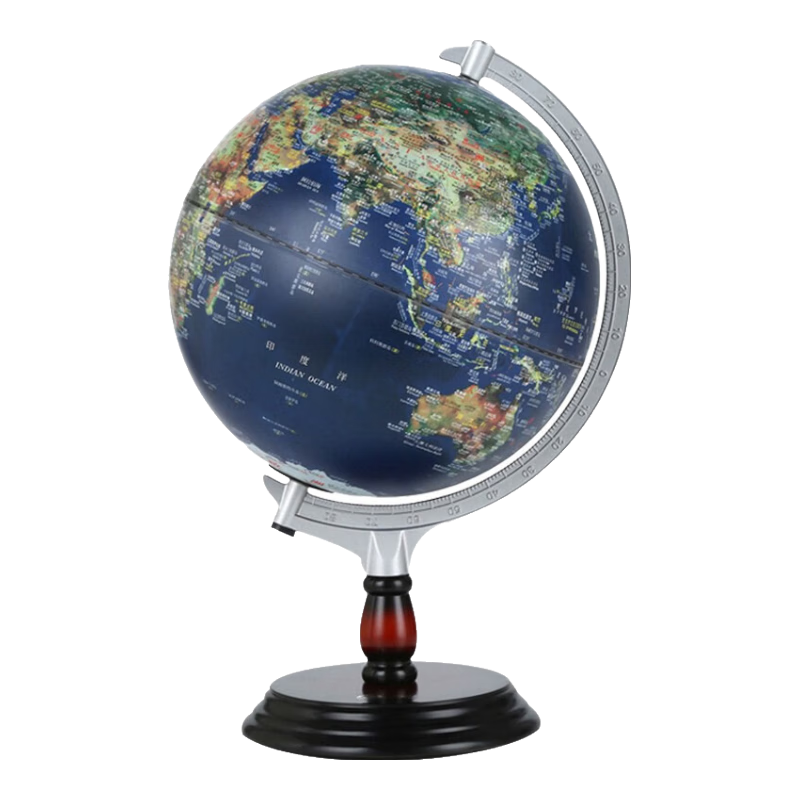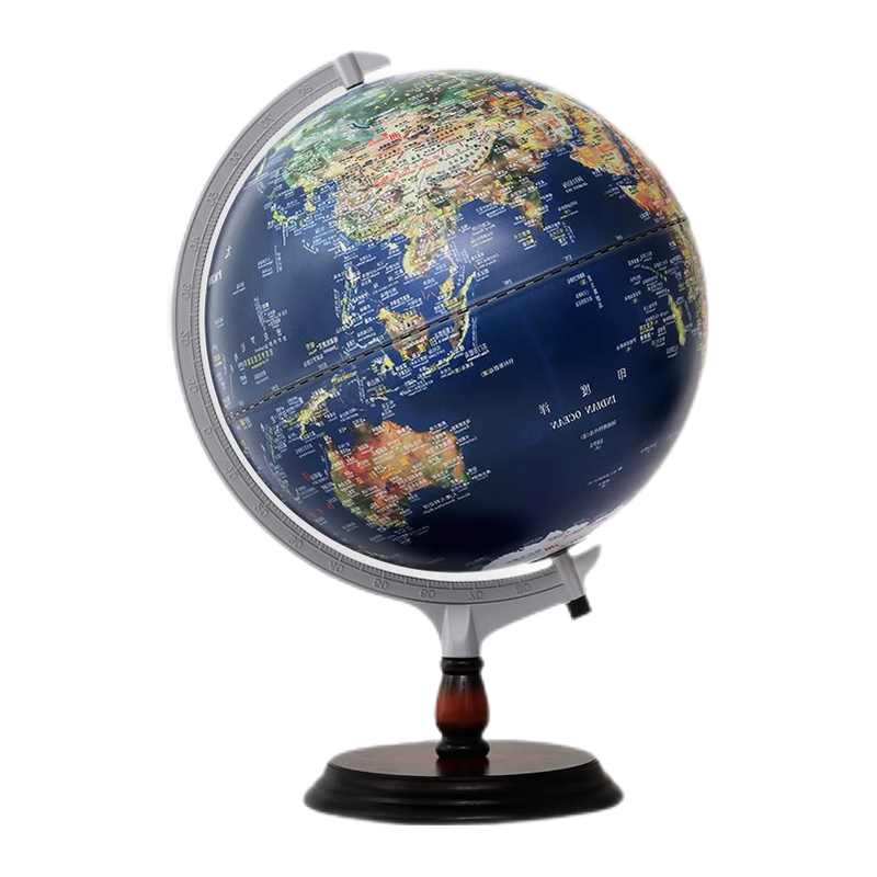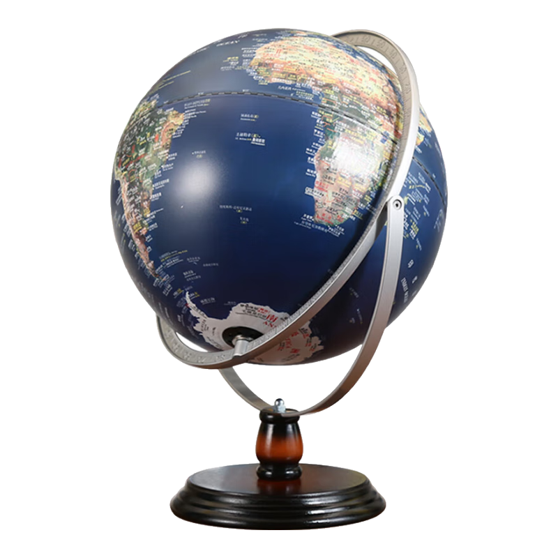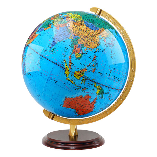 天屿 FD3209 立体浮雕地球仪 稳重木质底款 32cm