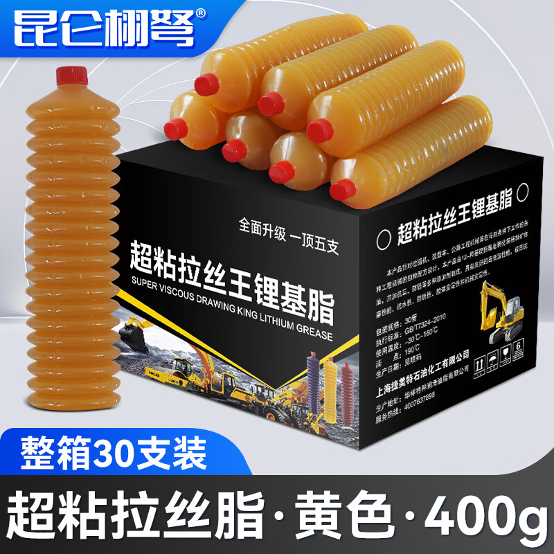 昆仑栩弩毛毛虫黄油润滑脂黄油枪专用弹抗磨耐高温锂基脂挖机工程机械铲车 400克棕色脂(超粘拉丝)整箱