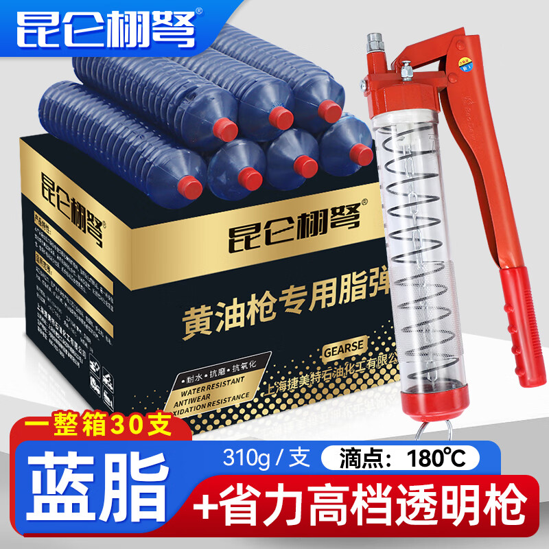 昆仑栩弩毛毛虫黄油润滑脂黄油枪专用弹抗磨耐高温锂基脂挖机工程机械铲车 耐磨【蓝脂310克】整箱带透明枪