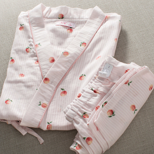 梦蜜和服款月子服薄款产后纯棉纱布孕妇睡衣夏季两件套长裤哺乳衣