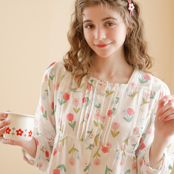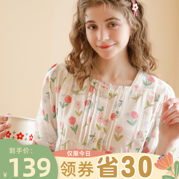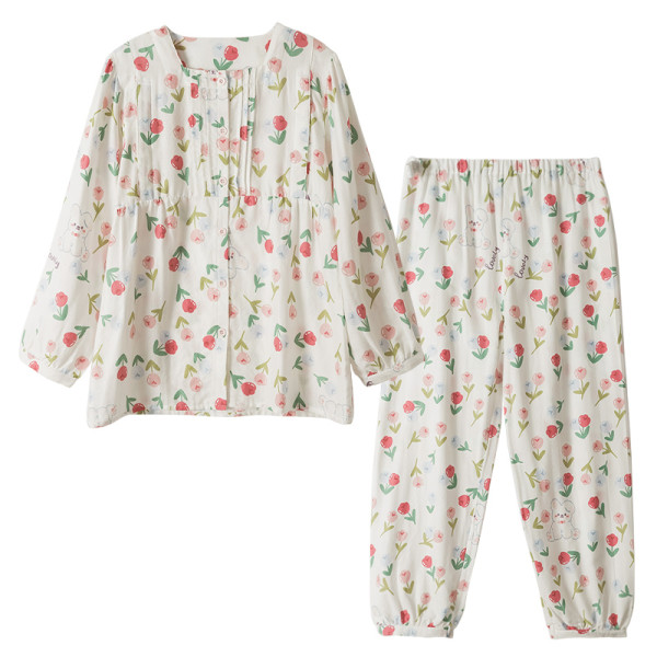 MENGMI 梦蜜 兔兔郁金香纯棉纱布月子服夏季薄款产后哺乳睡衣孕妇家居服