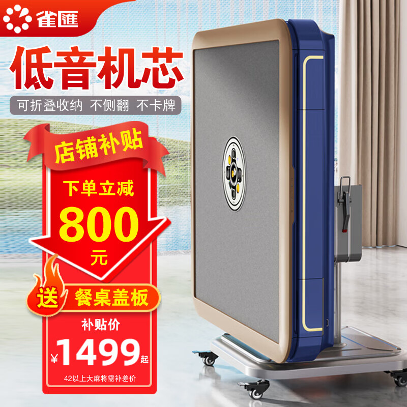 雀汇【防侧翻/20万次不卡牌/低音机】麻将机全自动麻将桌折叠餐桌一体 8JD仓 自带取暖 仿玉麻将 50-136张 全国通用 香槟金 高配版LK钻石106