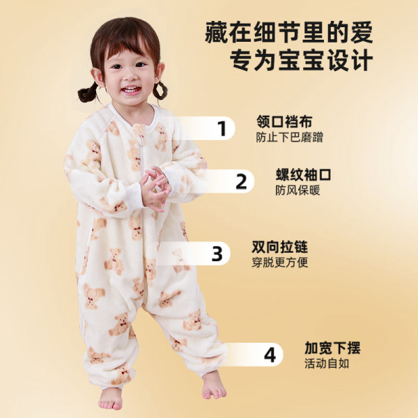 JIMI 吉米有品 有吉小贝婴儿法兰绒睡袋秋冬季分腿防踢被神器宝宝睡衣四季通用款