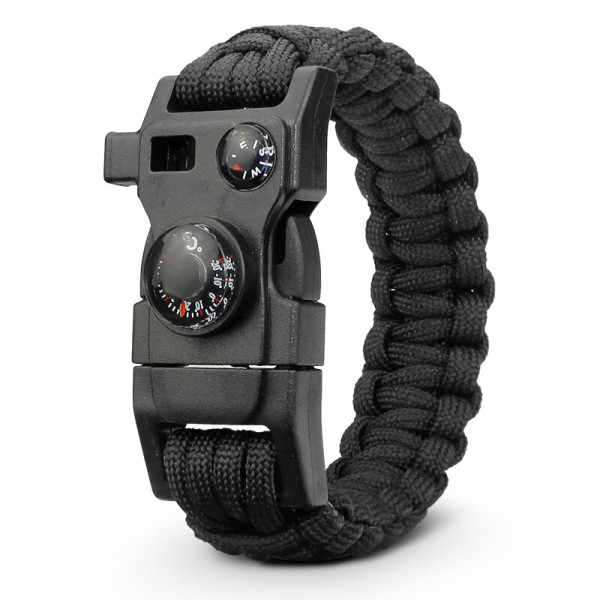 paulone 十五种功能手链手绳伞绳登山绳 带指南针打火棒工具卡SS1002黑色
