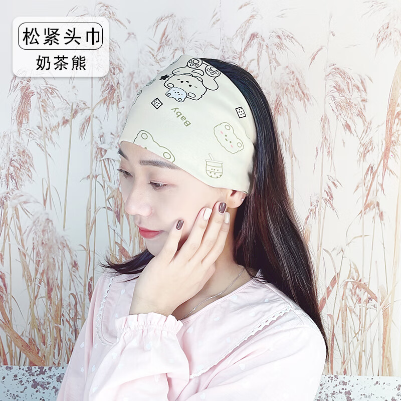 尚舒伴(SHANGSHUBAN)坐月子帽孕妇产妇帽子女头巾发带产后春夏季薄款透气时尚夏天防风 奶茶熊头巾 均码