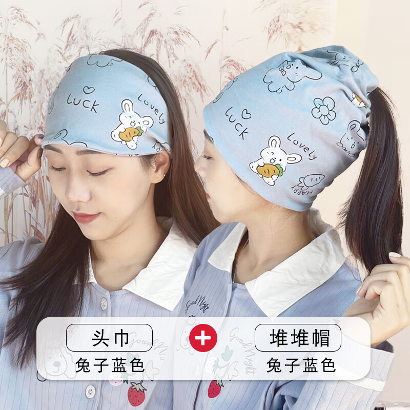 尚舒伴(SHANGSHUBAN)坐月子帽孕妇产妇帽子女头巾发带产后春夏季薄款透气时尚夏天防风 兔子头巾蓝色 兔子堆堆帽蓝色 均码