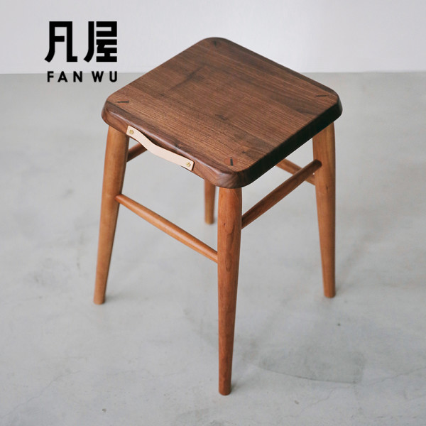 Fun House 凡屋 实木北欧榫卯樱桃木黑胡桃矮凳 巧克力方凳