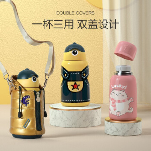威仑帝尔 儿童保温杯带吸管男女宝宝双盖两用幼儿喝水壶316不锈钢学生单眼仔水杯 大眼仔-550ml(双盖+杯套+礼盒装)
