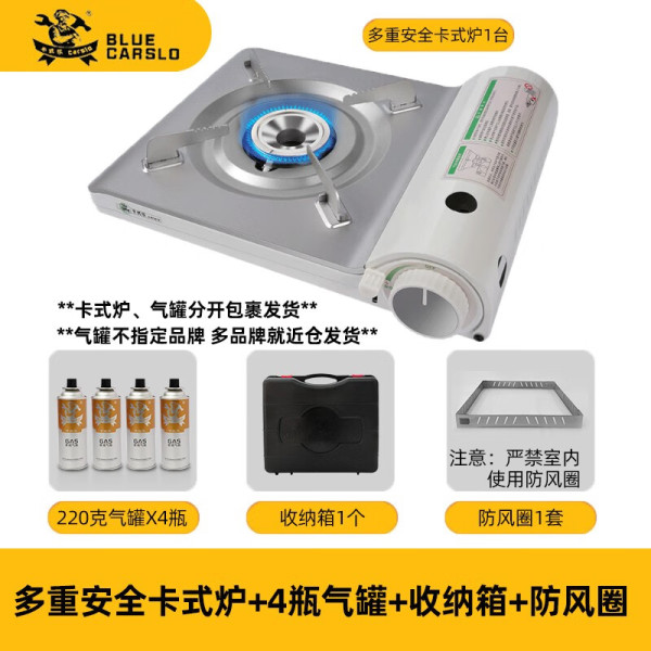 卡式乐卡式炉户外炉具便携式瓦斯卡斯炉野外露营燃气炉卡磁炉煤气灶炊具 白银色卡式炉+4气+收纳箱+防风圈