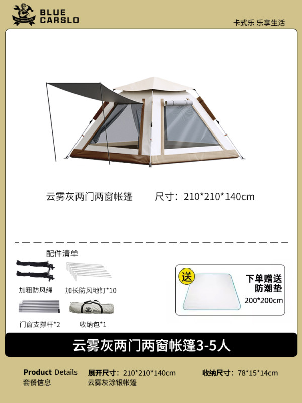 卡式乐 BLUE CARSLO 卡式乐 KS1ZP001 户外帐篷 3-6人 自动帐