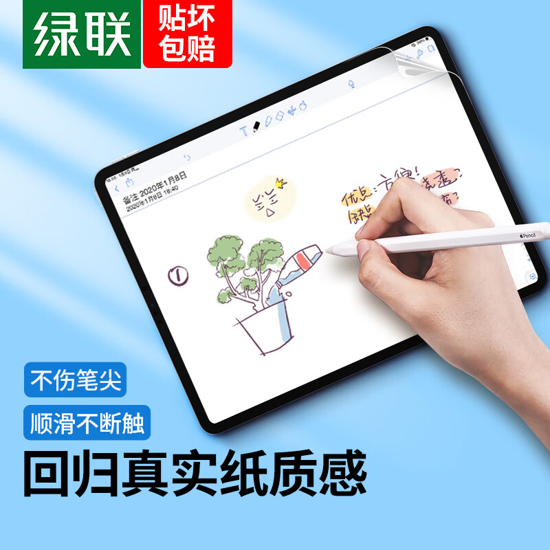 绿联适用iPad Pro类纸膜12.9英寸2022/2021/2020/2018苹果平板电脑手写绘画防眩光纸感磨砂肯特纸膜