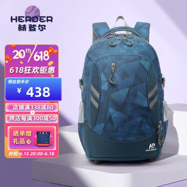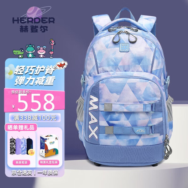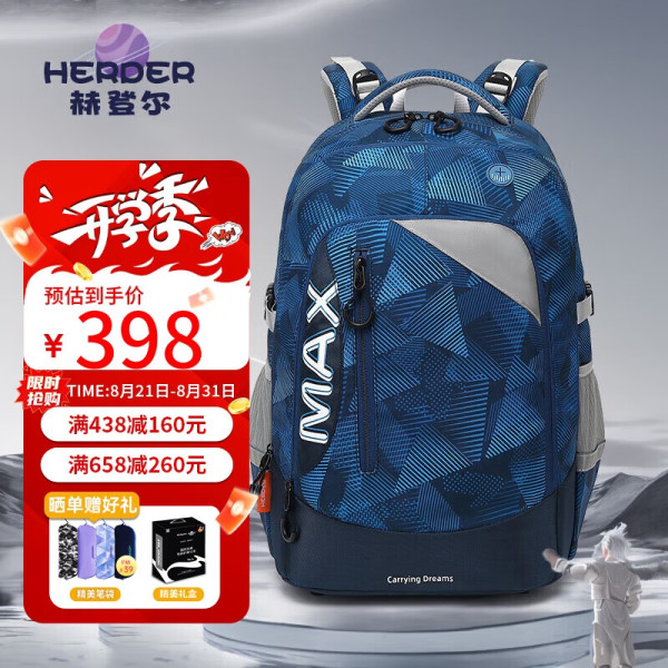 赫登尔 herder 初高中学生书包 大容量护脊扩容双肩背包
