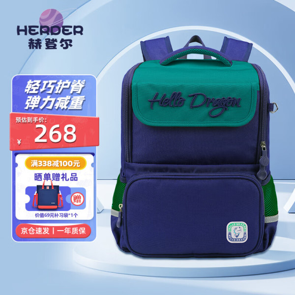 移动端、京东百亿补贴:赫登尔 herder 初中生书包 大容量双肩包