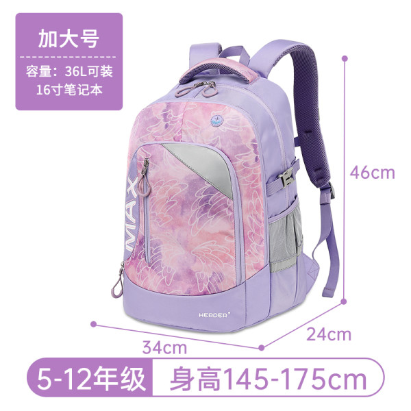 移动端、京东百亿补贴:赫登尔 herder 书包小护脊减负一二三到六年级透气轻便女孩防泼水儿童书包 爱心紫(大号3-6年级)