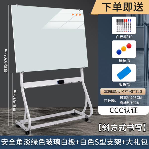 移动端:齐富 磁性钢化玻璃白板写字板S型支架式带轮移动磁吸黑板办公用会议室记事板小黑板儿童家用教学可擦书写板