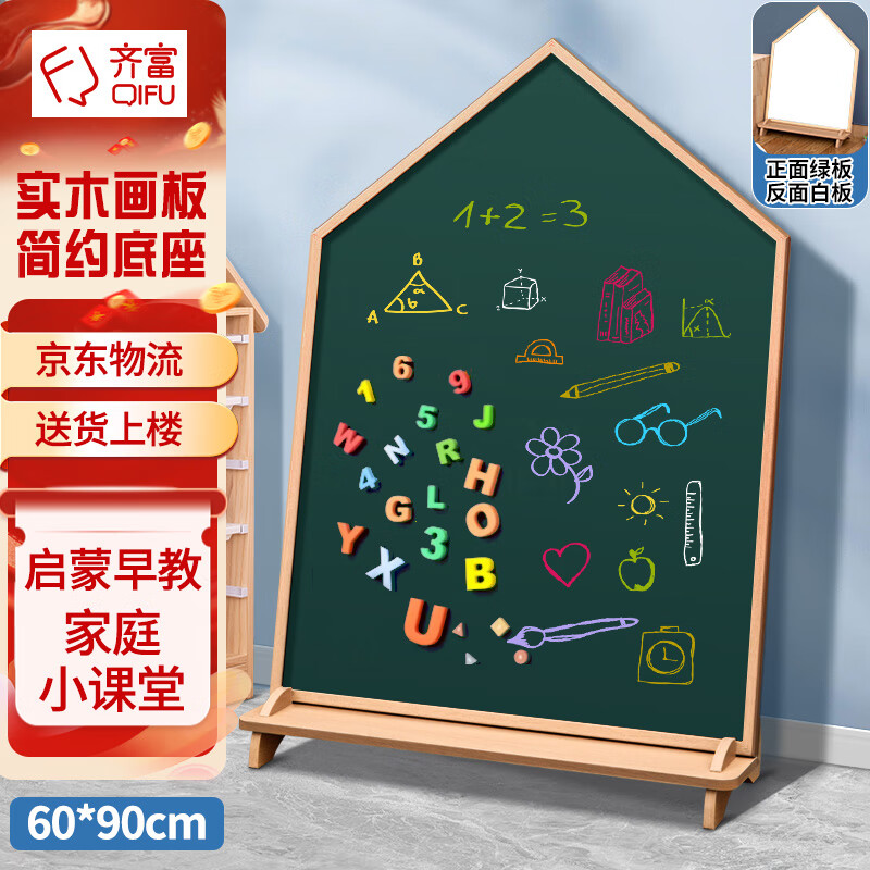 齐富60*90cm儿童绘画白板写字板可擦写双面小黑板家用儿童黑板宝宝画板涂鸦画架培训早教粉笔画画
