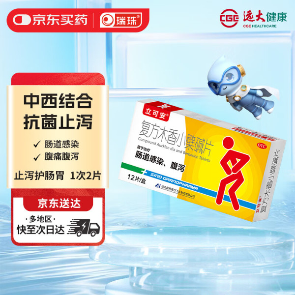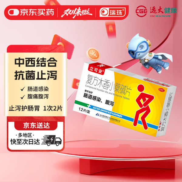 立可安复方木香小檗碱片12片/盒 肠炎胃肠道感染急慢性腹泻止泄腹痛腹胀拉肚子止泻