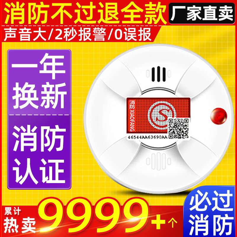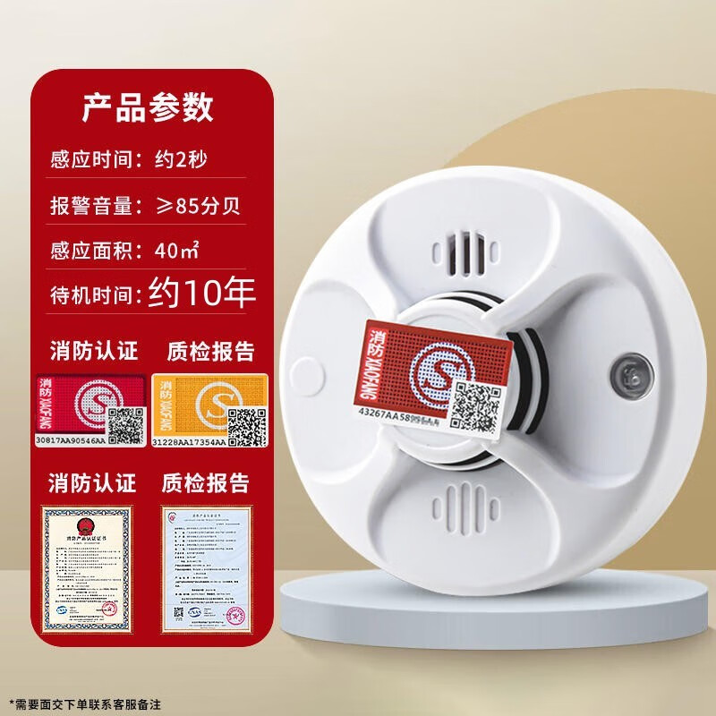 立可安烟雾报警器家用烟感器消防专用3C认证商用火灾感应探测烟感报警器 828消防款(电池耐用1年)