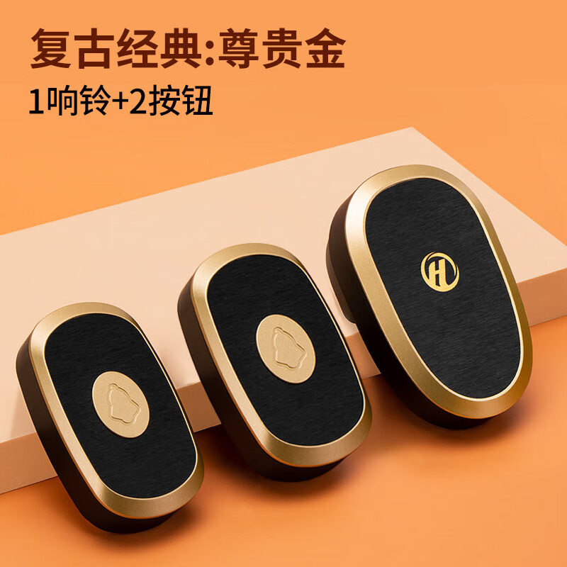 立可安门铃无线家用防水远距离穿墙别墅电子门铃智能可视门铃唤醒监控 门铃呼叫器:黑金2按钮1主机2挂绳
