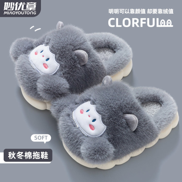 妙优童 儿童棉拖鞋2023新款秋冬季男女童宝宝室内家居防水防滑小孩亲子鞋
