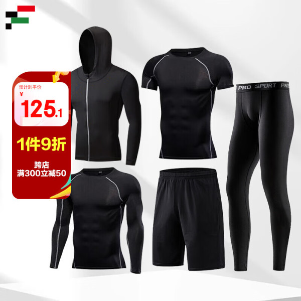 范迪慕 运动套装男健身服高弹训练透气速干紧身跑步T恤外套 黑色 2XL