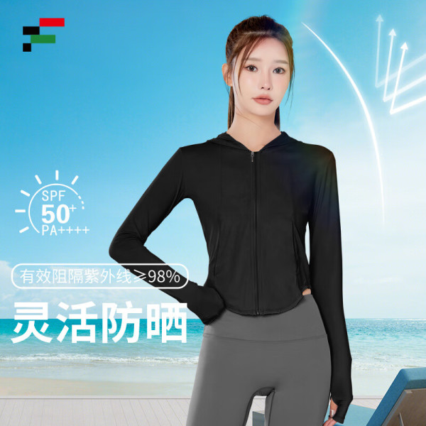 范迪慕 防晒衣女户外修身冰感透气防防紫外线连帽外套
