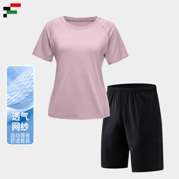 范迪慕 运动套装男女户外跑步瑜伽透气排汗速干情侣综合训练健身服 粉 XL