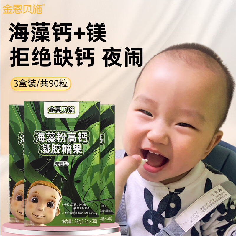 金恩贝施液体钙儿童乳钙滴剂搭钙铁锌婴幼儿婴儿营养包宝宝钙片1-3岁海藻 【宝宝安睡】海藻钙3盒