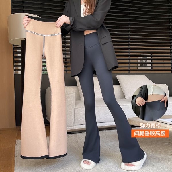 SHOWDAY 秀黛 加绒秋冬季微喇鲨鱼裤女外穿高腰喇叭裤芭比裤