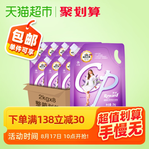 洛娃cp馥郁香氛柔护洗衣液2kg*8袋低泡精油香味袋装补充装家用装