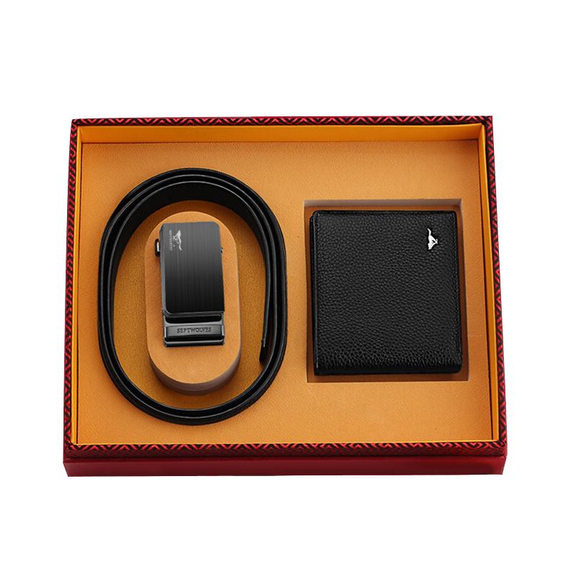 七匹狼皮带牛皮男士钱包 自动扣裤腰带礼盒套装L9969送男友情人节礼物
