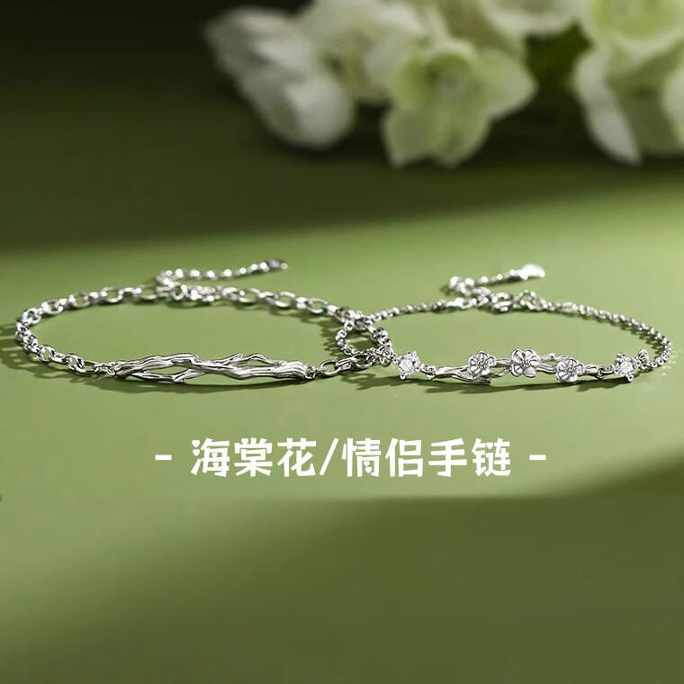 艾芙洛925纯银海棠花情侣手链男女款七夕情人节生日礼物送女友男友 情侣一对 证书 高档礼盒