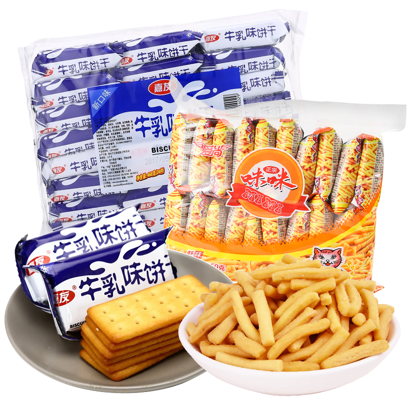 咪咪虾味360g 嘉友牛乳饼干468g 休闲零食怀旧大礼包